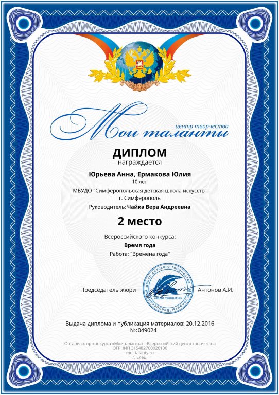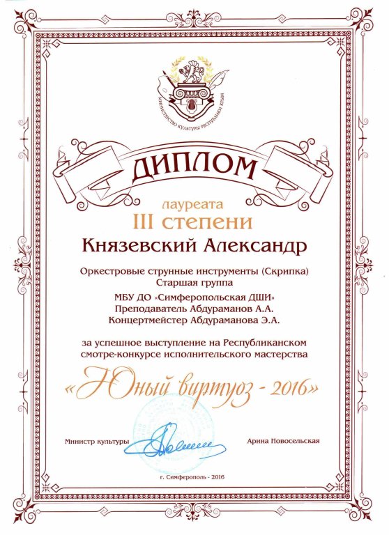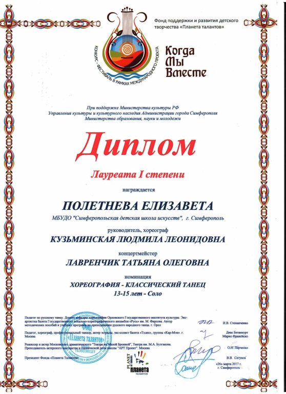 Муниципальное бюджетное учреждение дополнительного образования «Симферопольская детская школа искусств» муниципального образования городской округ Симферополь