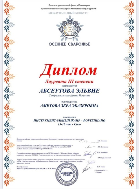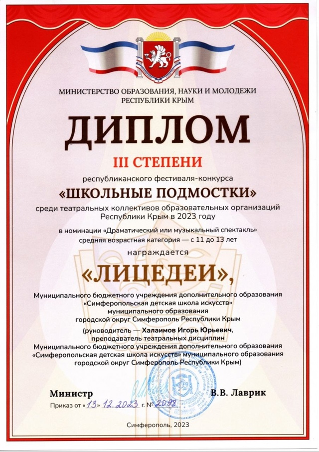 Муниципальное бюджетное учреждение дополнительного образования «Симферопольская детская школа искусств» муниципального образования городской округ Симферополь